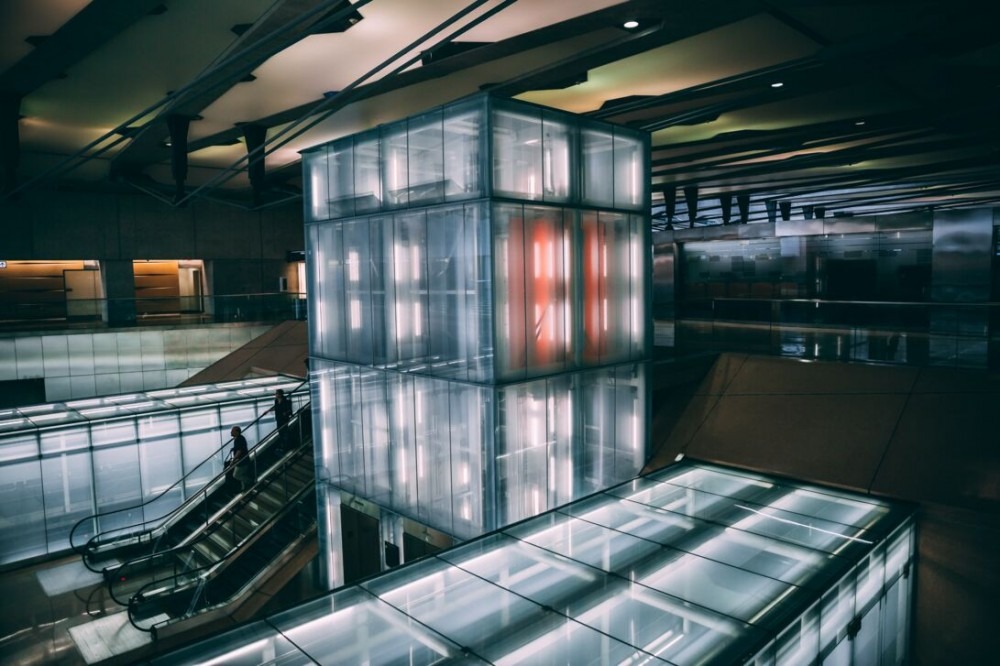 The underground main station building is 4 floors high and measures 1,200 feet long by 100 feet wide by 50 feet high. The bottom level of this structure is similar to a subway station.